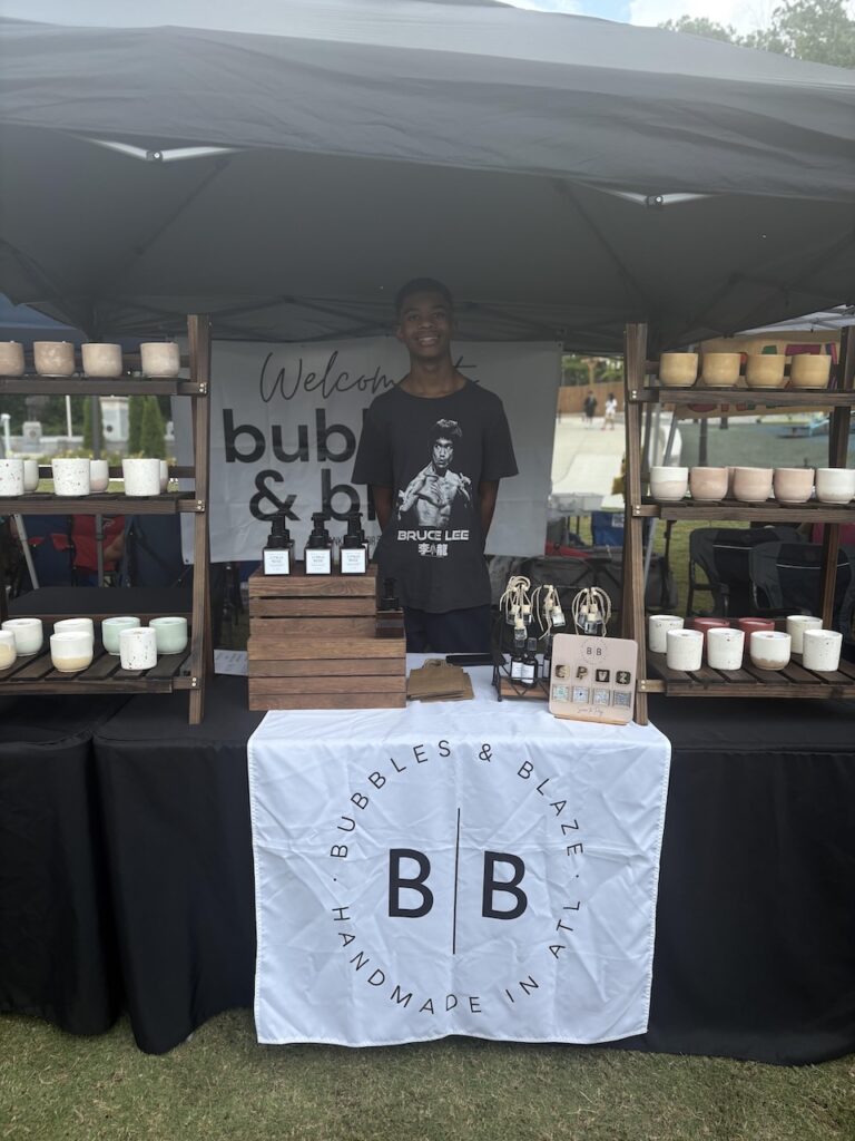 During an interview, Fonzi talked about the problems that he saw around him growing up. He discussed how he learned that scents can have a helpful impact on stress and sadness which led him to think about candles. Through research he then discovered that a lot of candles from popular, big brands are made of harmful waxes. Having no prior experience in candle making, Fonzi started out his business by hand, and through trial and error has accrued over $3,000 in sales from across the nation up to this point. Coleman was also given the opportunity to have a booth set up for his products at the Children’s Entrepreneur Market, founded by Connor Boyack.