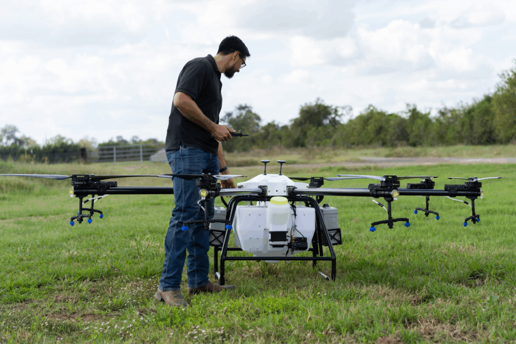 While in Costa Rica, Erickson noticed how the famers of the land had to spread pesticides by hand. The terrain most farms sat on was plenty fertile, but unfortunately too rugged for any type of wheeled or tracked vehicle to traverse with ease. It was here where Erickson realized a new niche Hylio could insert themselves into. Immediately, Erickson and his team began retrofitting their prototype drones with sprayer attachments underneath the propellers, added a pump and pesticide tank, and began testing. With some tweaking to their navigation systems, and some work done to make the drone reliable, Hylio had successfully turned their once grocery delivery drone into a high tech, airborne crop spraying and monitoring system. Upon showing off their reworked prototype at an agricultural trade show, their initial prototype drone sold while still being displayed. The demand for their product was there, and Erickson finally knew he found what he was looking for.